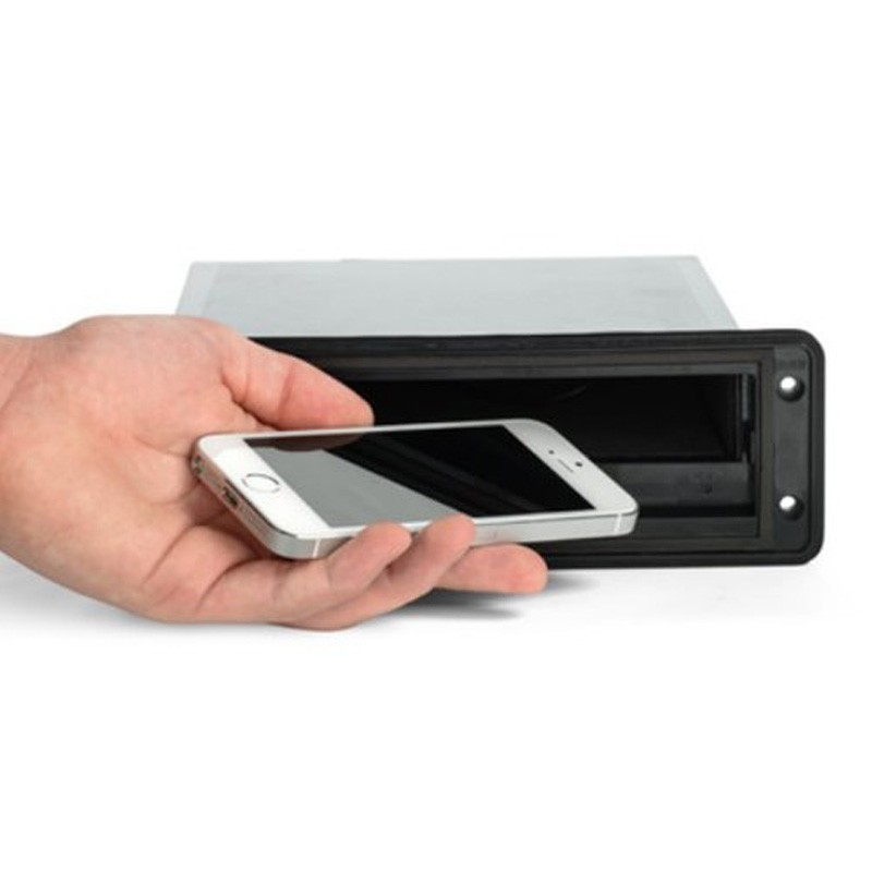 Permite utilizar el dispositivo movil como central multimedia, con total control sobre todas las funciones, hasta tamaño del Samsumg Galaxy Note 2, Posibilidad de control remoto en formato redondo (AQ-WR-5F), para instalacion fija.