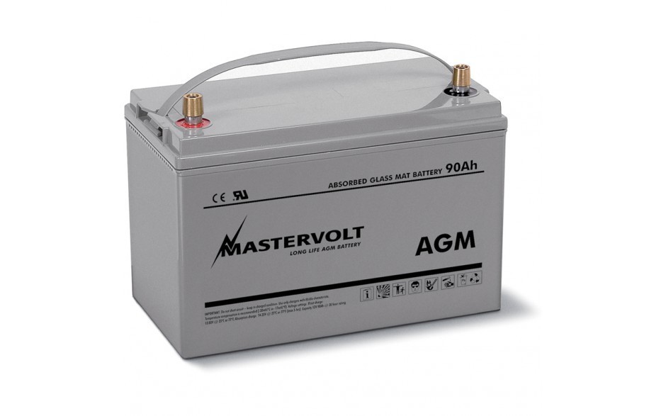 En las baterías AGM, el electrolito (mezcla de agua y ácido sulfúrico) está absorbido en fibra de vidrio. Este tipo de batería está totalmente libre de mantenimiento, y no se forman gases con el uso normal. Al no necesitar ventilación estas baterías se pueden instalar en cualquier parte. Su construcción ofrece una descarga muy rápida a elevadas corrientes, por lo que las baterías AGM son ideales para sistemas que requieran elevadas corrientes (por ejemplo al arrancar un motor). Los polos de la batería se pueden desenroscar, y este tipo de batería se puede combinar con todos los terminales estándar de baterías. Excelente función de arranque. Actualización perfecta para baterías de plomo ácido. Misma potencia de arranque en una AGM 12/90 Ah que en una batería de plomo de 180 Ah. Tecnología de fibra de vidrio que garantiza una resistencia interna baja. El uso de placas más gruesas que extiende la vida útil. Se puede combinar con todos los terminales de baterías estándares. También para uso medio cíclico.