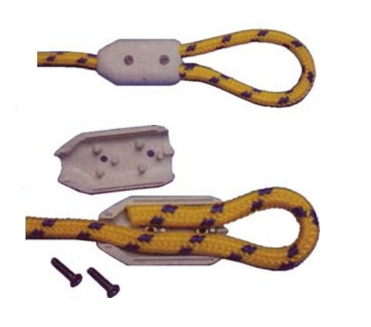 Mordaza para cabos. Para facilitar el tedioso trabajo de hacer gazas en los cabos de amarre y defensas. Fabricado en material composite resistente a los rayos UV. Color blanco.