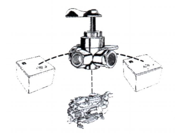 Vávula de 3 vias para el montaje de 2 depósitos a un solo motor.